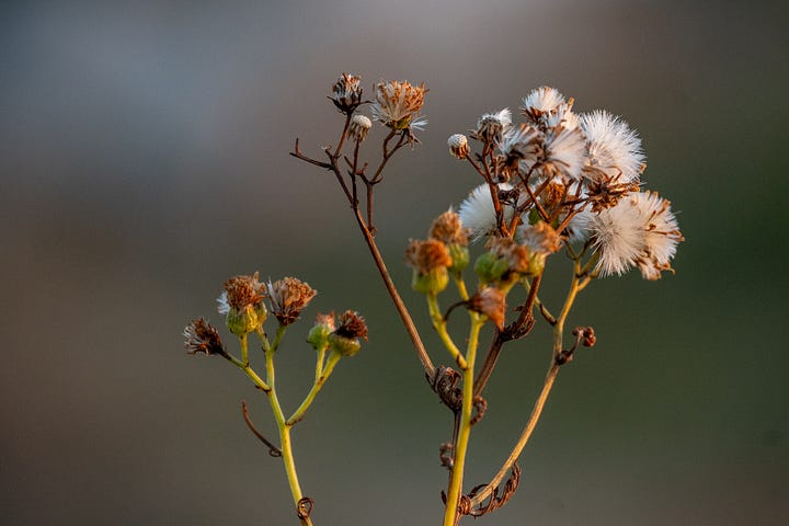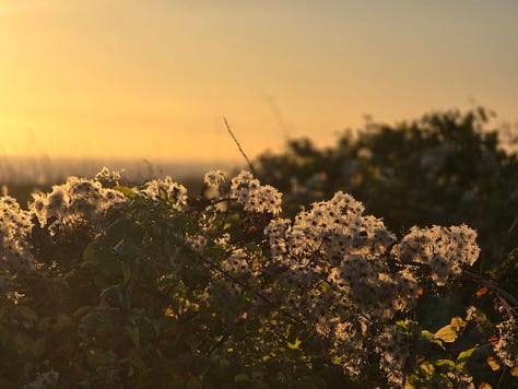 I wake up feeling tired. I get up anyway and slowly go about the day, the grey, wet weather not particularly inspiring me to get moving. I end up having a nap. My first instinct is to berate myself for being so lazy, however I allow myself to wake up properly, have a drink of water, and slowly do some jobs that I really wanted to get done that day to help with the week ahead (food prep etc). I slowly focus on the tasks at hand. The sun and blue skies have now come out, which lifts my spirits immensely. I’m still not feeling that great, and not feeling very productive, however I decide to journal and write down everything I’ve done so far that day, and it actually is much more than I’d given myself credit for. The feeling passes and I head to the beach for a cold sea swim. It’s low tide, so I head to Chesil beach on the west side, where it is deep water no matter what tide it is. There does seem to be a bit of a swell, so I cautiously enter the water and stay close to the shore, having fun floating back and forth with the ebbing and flowing of the waves. The draw of the waves is strong today, and it does require a lot of focus and strength to get back to shore before the strong wave carries you out again or the next wave hits you. The water is always a reminder to remember that she is the one in control. I end the day feeling much more like myself again, with all inner stress dissolved, so I decide to head out on one of my favourite routes to watch the sunset. The setting light is bright and golden and creates pockets of light and long shadows over the golden grasses. The energy feels softer: temperatures are still warm, but the breeze is cooler. Foliage is now mainly intricate seed heads which are ethereally backlit in the evening light. Without that light, the beauty would appear ordinary, mundane, passed by.
