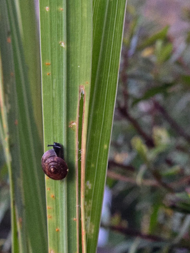 As the sun is rising, I sit in the garden and just allow myself to be. I notice the spiders that have made a home. Are spiders territorial? How do they make such long webs in the air without falling? I must look this up. The softer, lower-lying light makes the web strands glisten and shimmer pearlescent. A tiny snail glides along a gladioli leaf, now becoming frayed and slowly decaying. The simple stillness invites a state of flow and a simple rhythm of just being. This is enough.